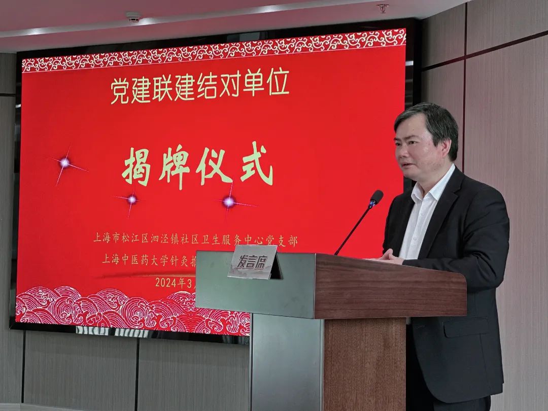 3月22日,上海市非物质文化遗产内功推拿疗法传承工作室、内功推拿流派传承工作站,银质针和压痛点推拿疗法临床基地,针灸推拿康复疼痛“四位一体”临床医学中心等揭牌仪式在泗泾镇社区卫生服务中心举行。