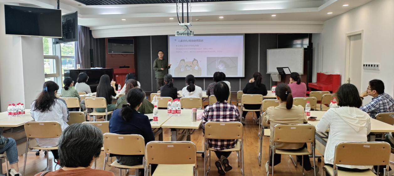 5月21日,“儿童青少年手机/网络使用与家庭教育”bat365中文官方网站“家长课堂”系列课程在校教工之家举行。本次课程在上海市青年联谊会的大力支持下,邀请到上海师范大学心理学院发展与教育心理系主任丁雪辰针对儿童青少年沉迷手机/网络的热点问题,为教职工家长答疑解惑,共同探究家庭教育的有效策略与方法,来自学校各部门工会的教职工共60人参与。