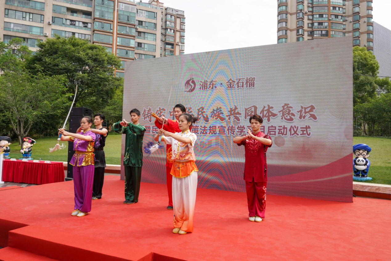 6月12日,2024年浦东新区铸牢中华民族共同体意识暨民族宗教政策法规宣传学习月启动仪式在浦东新区金石榴公园举行。bat365官网作为浦东新区区域共建单位,校武术队受邀参加此次展演活动。在舞台上,队员们身着武术服装,英姿飒爽,伴随着激昂的音乐,以精湛的武术技艺,为观众带来了一场视觉盛宴。武术作为中华文化的重要组成部分,是中华民族的文化瑰宝。通过校武术队的展演,为浦东新区民族宗教政策法规宣传学习月启动仪式增添了一抹亮丽的色彩。