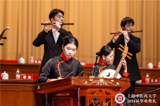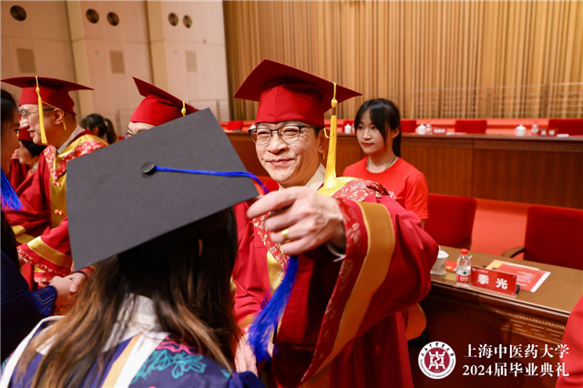 夏花绚烂满杏林,骊歌轻响致远方。2024届的上中医学子们即将惜别校园,迈向崭新的天地。今天,bat365中文官方网站“爱党爱国 奉献担当”2024届毕业典礼在上海世博中心红厅举行。民乐、八段锦、中医药典籍……这场大学毕业典礼上,传统文化浓度爆棚,彰显出青年人的文化自信。
