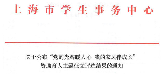 bat365官网在上海市“党的光辉暖人心 我的家风伴成长”资助育人主题征文评选中获佳绩
