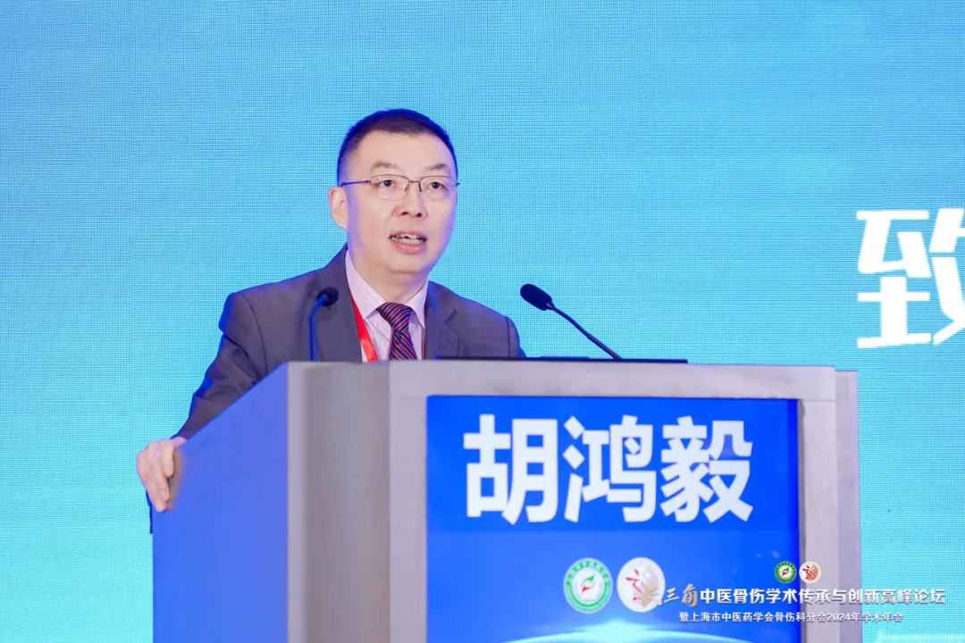 胡鸿毅代表上海市卫生健康委员会、上海市中医药学会向各位来宾的到来表示热烈欢迎和衷心感谢,他强调,骨伤学科作为医学的重要分支,承载着治疗与康复的重要任务。在中华民族的悠久历史长河中,中医骨伤科以其独特的疗法和显著的疗效,成为传统医学的重要组成部分。本次论坛正是为了弘扬中医药文化,传承和创新骨伤学术,推动长三角地区骨伤学科的发展与建设,为全民健康事业贡献力量。