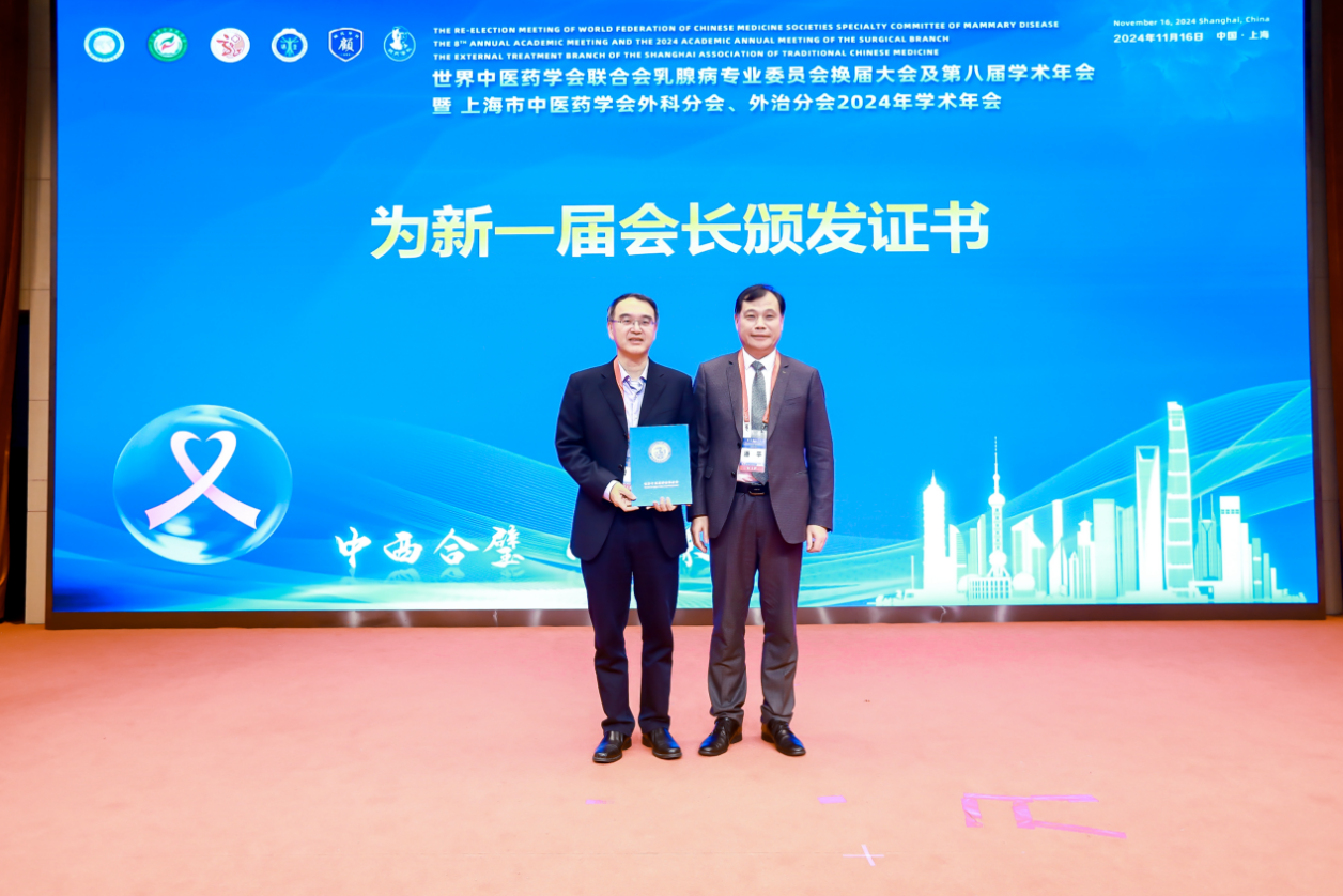 11月15日至17日,世界中医药学会联合会乳腺病专业委员会换届大会及第八届学术年会暨上海市中医药学会外科分会、外治分会2024年学术年会在沪召开。本次会议由世界中医药学会联合会乳腺病专业委员会、上海市中医药学会共同主办,上海市中医药学会外科分会、上海市中医药学会外治分会联合承办。此次盛会吸引了众多中医药领域的专家学者与行业精英,共同聚焦乳腺病及中医药外治等重要领域。