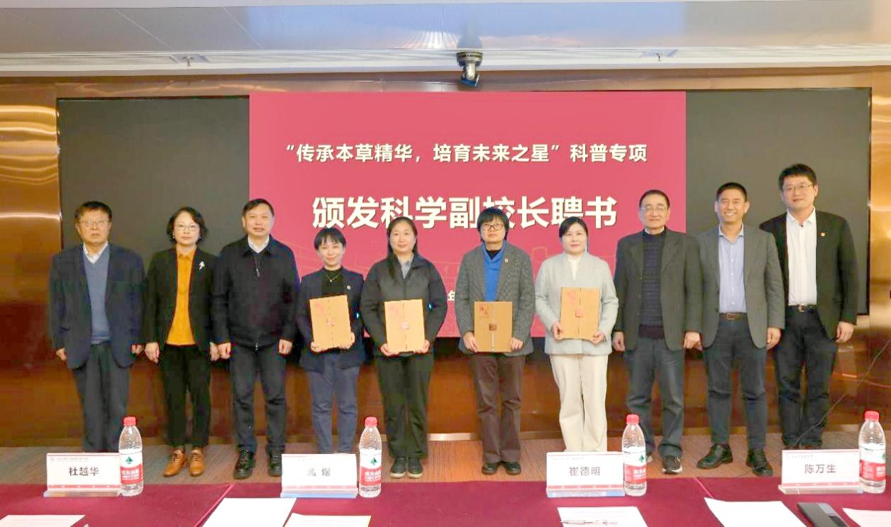 会上,中药研究所研究员肖莹、丁丽丽、赵淑娟、张紫佳分别被两所中学聘为科学副校长。