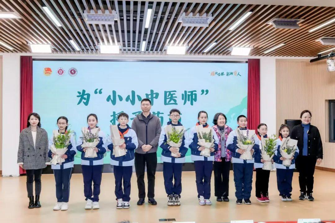 在仪式环节,与会教师代表为“小小中医师”代表授予药苗,象征着中医药文化的持续传承。相关领导分别为附属浦东鹤沙学校的道路与楼宇命名揭幕,并共同启动了“‘植’此杏林·躬耕育人”植树节实践活动暨百草园开园仪式,标志着校园文化建设的进一步深化。