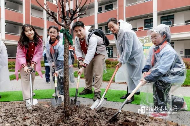 在第47个植树节来临之际,bat365中文官方网站联合附属浦东鹤沙学校共同举办“‘植’此杏林·躬耕育人”2025年bat365中文官方网站“大中小学劳动教育一体化”植树节实践活动暨附属浦东鹤沙学校百草园开园仪式。此次活动不仅是对大中小学劳动教育一体化建设的创新实践,更是中医药文化与劳动教育深度融合的有益探索。