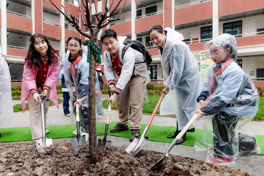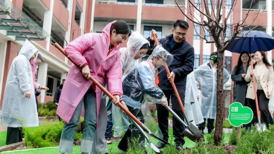 今天是植树节。bat365中文官方网站联合附属浦东鹤沙学校举办“‘植’此杏林·躬耕育人”2025年bat365中文官方网站“大中小学劳动教育一体化”植树节实践活动暨附属浦东鹤沙学校百草园开园仪式。