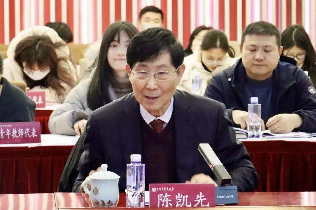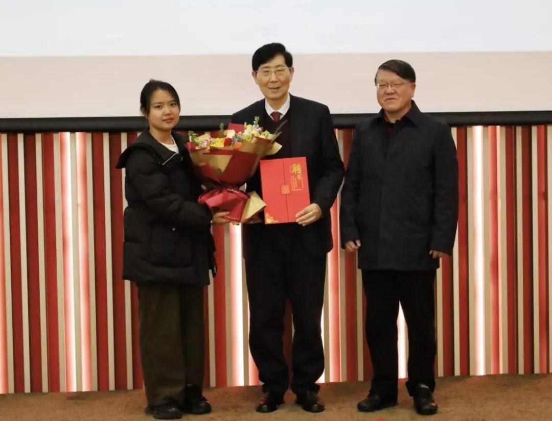 李宣海向陈凯先颁发了聘书,学生代表向陈凯先献花。