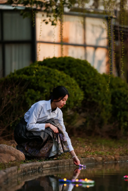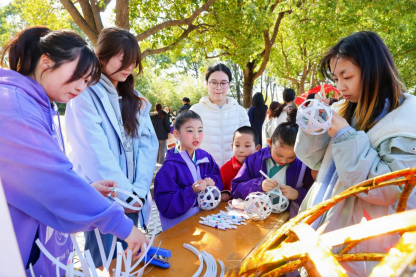 芳华绽放的杏花湾旁,传统文化集市“杏林游园会”人头攒动,将整片杏花湾化作流动的传统文化画卷。集市上,各类传统文化与非遗技艺的体验展示琳琅满目,香囊制作、中草药辨识等中医药文化体验为师生带来杏林探秘的沉浸之旅;剪纸艺术、中国书法、抖空竹等非遗技艺展示让师生邂逅了穿越千年的文化交响;学生心理健康集市采取投壶、沙包等传统运动健心,绘画等表达性艺术健心等互动方式,让学生释放青春活力;现场的汉服展示、舞蹈表演、功法教学更是营造了浓厚的传统文化艺术氛围。夜幕降临,三星河畔灯火闪烁,师生们共同参与传统民俗文化活动——放水灯,一盏盏承载美好期许的灯船随波而行,宛若星河洒落河面。
