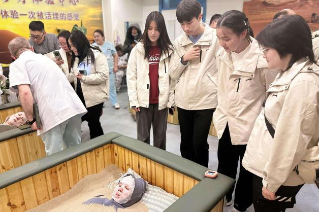 拓展“学”的途径,在交流中筑牢育人根基。中医药在古丝绸之路上拥有着悠久的交流历史,当前更肩负着共建“健康丝绸之路”的新使命。中医学院“‘生生’同心实践团”奔赴新疆探寻民族医药奥秘,前往新疆医科大学、新疆维吾尔自治区维吾尔医医院、新疆维吾尔药业有限责任公司等地交流学习,现场观摩沙疗、药浴等特色维医诊疗技术,与当地维医学专家亲切交流。2024级民族预科班李建谊不禁感叹,“本次实践让我切身了解了维医的医疗理论和特殊疗效,感悟到中医药文化的博大精深,进一步坚定和增强了文化自信。”