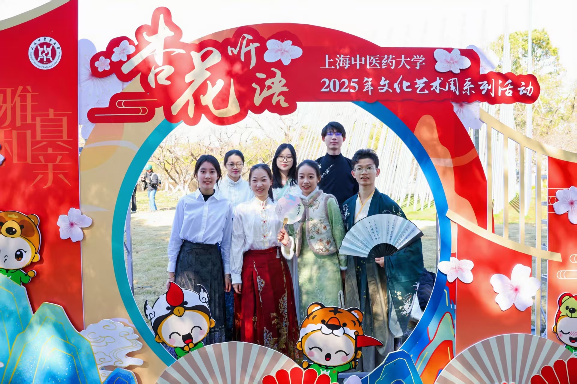 “杏花听语”文化艺术活动周以“雅和真亲”为理念,结合三月校园杏花盛景,举行中医经典诵读、书画摄影比赛、留学生周周看上海、中医药文化园本草探秘等系列活动,并运用AR技术、集市互动等形式吸引青年学生参与,展现中医人文之美、自然之趣、仁心之暖。