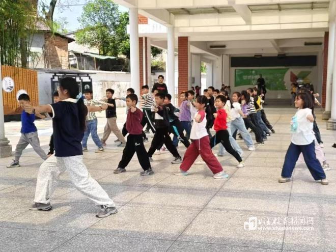 在浯口瑶冲瑶族小学,民族预科班学生张雅轩系统教授八段锦、太极拳及五禽戏等传统养生功法。