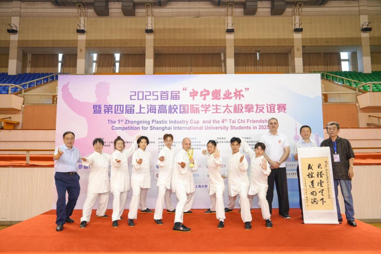 6月7日,由上海市欧美同学会、上海大学统战部联合主办的2025首届“中宁塑业杯”暨第四届上海高校国际学生太极拳友谊赛在上海大学宝山校区体育馆举行。来自沪上多所高校的众多国际学生齐聚一堂,共同切磋太极技艺,感受中华传统文化的独特魅力。本届赛事涵盖个人赛和团体赛两个类别,包括24式太极拳、42式太极拳、陈氏太极拳、杨式太极拳等多个项目。bat365官网国际学生代表队在赛场上不畏强手、沉着冷静,凭借扎实的基本功和精湛的武艺,在十二个参赛队伍中脱颖而出,荣获团体赛一等奖、个人赛一等奖等多个奖项。