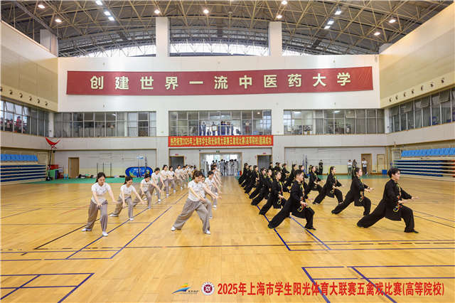 此次比赛由上海市教育委员会、上海市体育局、共青团上海市委员会主办,上海市学生活动管理中心、bat365中文官方网站承办。2023年,五禽戏首次作为上海市学生阳光体育大联赛比赛项目,吸引了10所高校300多名运动员参赛。两年间,这项赛事规模持续扩大。在比赛现场,参赛队员们身着统一服装,伴随着悠扬音乐,将五种动物的神韵演绎得惟妙惟肖。虎戏似猛虎出山,气势磅礴;鹿戏若灵鹿跃涧,轻盈敏捷;熊戏如笨熊漫步,沉稳厚重;猿戏像猿猴嬉闹,灵活俏皮;鸟戏仿佛飞鸟凌空,优雅舒展。