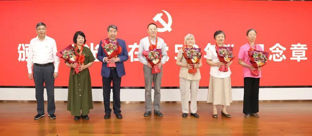 校党委书记曹锡康代表学校党委向获得“光荣在党50年”纪念章的老党员表示祝贺,并向辛勤耕耘在学校教育医疗战线上的广大党员干部和党务工作者致以节日的问候。他指出,一是要赓续党的光荣传统,传承优良作风,以作风建设新成效推动学校发展行稳致远。要以深入贯彻中央八项规定精神学习教育为契机,在学中思、查中改、改中进,切实把作风建设贯穿到管党治党、办学治校、立德树人全过程各方面。二是要着力夯实基础,深化赋能增效,全面增强党组织政治功能和组织功能。牢牢把握基层党建的重点,不断突破党建和业务深度融合难点,挖掘基层党建工作特色亮点。三是要持续深化改革,破解裉节难题,奋力谱写学校高质量发展的新篇章。要严改革之“责”,砺改革之“为”,赋改革之“智”,在各项重大任务中充分发挥基层党组织战斗堡垒作用。