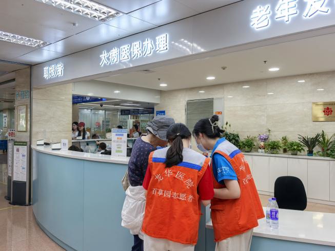 而在弥漫着艾草香气的中医治疗室,队员们当好“医患桥梁”,穿梭于病床间协助医生做好治疗准备,细心提醒注意事项。人流量最大的门诊大厅,队员们成为一个个“流动导诊站”,时刻关注那些带着迷茫张望的老人,用清晰的指引、放慢的语速,导向科室位置、检验检查的路线。
