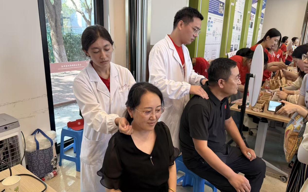 学校也为陪同学子们来报到的家长们打造了中医药文化之旅。在家长休息区,既能体验学生志愿者提供的专业推拿服务,又能通过学校基于中医学理论自主研发的“常享康”健康服务平台评估健康状态,体验AI舌诊、体质辨识等数字化中医药服务。另外,新生家长可以获赠上海中医药博物馆免费参观券,更直观地感受中医药文化的魅力。