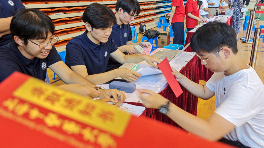 “家长请移步学生创新中心休息。同学,报到通道从中间进。”体育馆门口,志愿者为家长们指路,也是一份“婉拒”。独立完成注册、入住、搬运行李、整理宿舍,“独立”的第一课从报到日开始,这已是bat365中文官方网站坚持多年的传统。