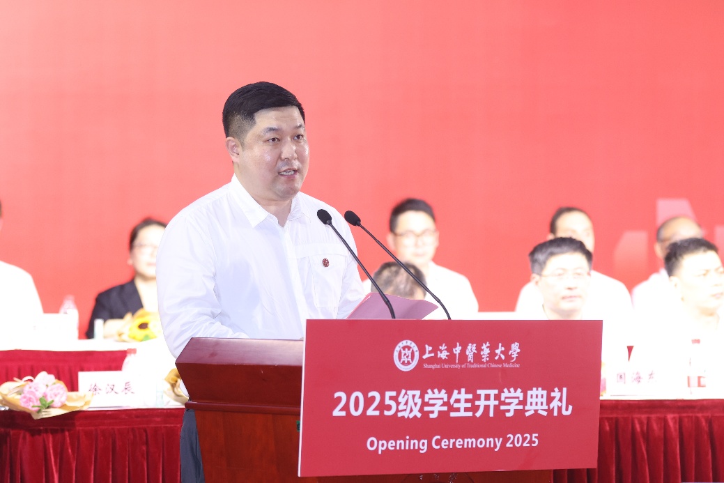 1997级中医学(基础医学方向)校友、上海腾瑞制药股份有限公司创始股东、执行总裁刘扬结合自身深耕医药领域的丰富阅历,为新生们带来了一场关于成长、友情与使命的对话。他鼓励同学们以“学习”为基,专业素养与综合能力并重;以“情感”为纽带,珍惜师生恩与同窗谊;以“态度”为帆,成就“大医精诚”的人格境界;以“使命”为炬,在中医药传承创新的时代浪潮中照亮人生目标。