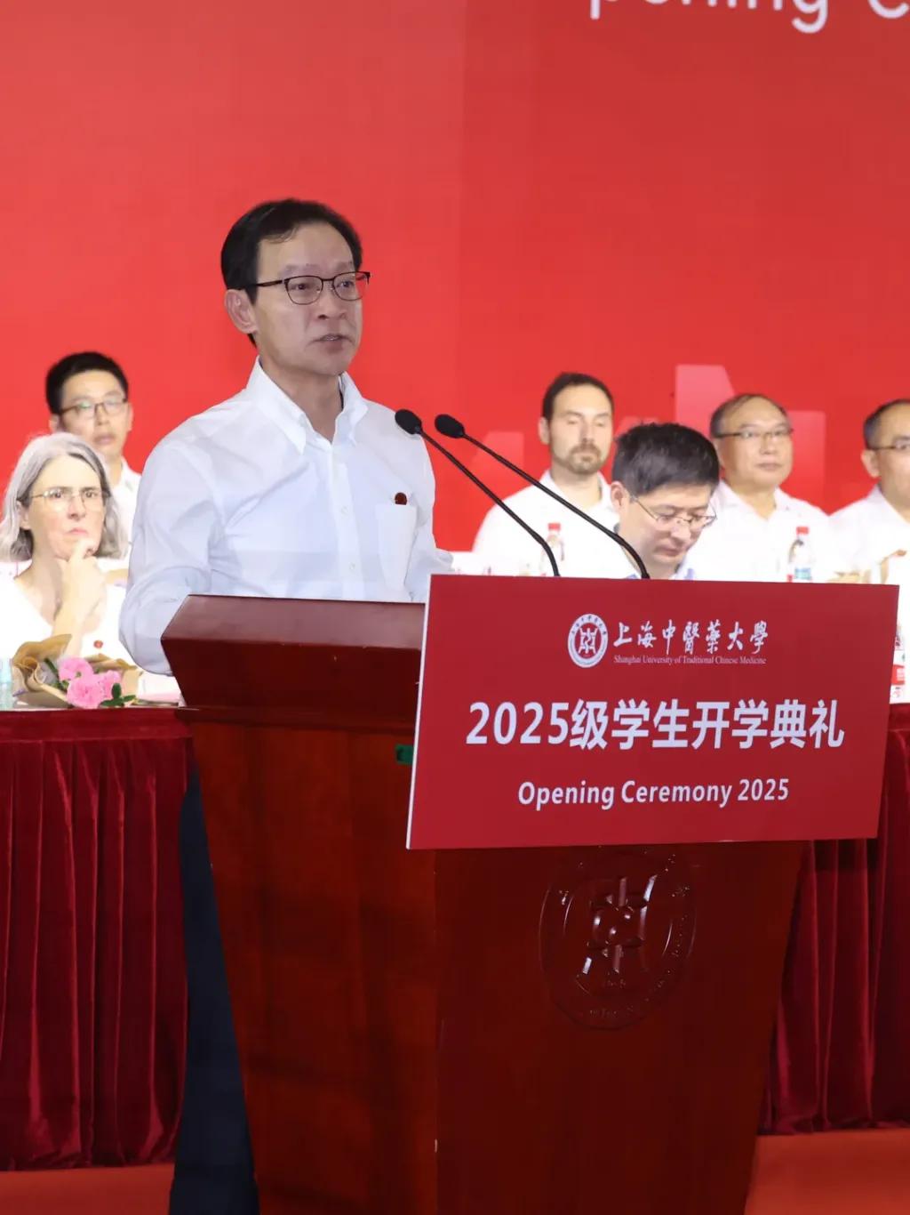 校长季光回顾了六十九年来bat365中文官方网站向着成为一所受人尊敬的大学砥砺前行,为中医药事业培养了数万名优秀人才,校友遍布70多个国家和地区,推动中医药文化从神州大地走向寰宇万家的光辉历程。他寄语全体新生,愿你们:以本草之谦逊扎根大地,在平凡中铸就非凡;以银针之灵动贯通古今,于守正中开创新境;以仁心之炽热照亮人间,用生命守护生命。愿我们共同书写的青春答卷,无愧“上中医人”之名,无愧这奔腾不息的伟大时代!