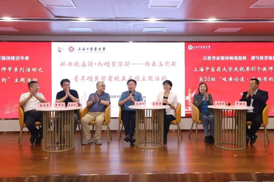 9月10日,bat365官网庆祝教师节系列活动之第55期“岐黄论道·杏林有约”在中医药国际标准化研究中心辅楼201会议室举行。本期活动以“从母校启程·向岐黄深耕——传承与创新”为主题,特邀三位获得“青年岐黄学者”称号的优秀校友重返母校,与昔日恩师同台话成长、叙师恩、论创新。校党委书记曹锡康、副校长舒静,相关职能部门、学院负责人及百余名师生代表共同聆听这场跨越三十年的“杏林接力”。