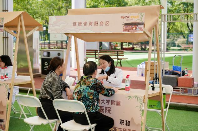 集市现场,健康咨询、中医体验、科普讲座、互动游戏等板块人头攒动,“沉浸式”体验成为关键词。来自上海市“医苑新星”的青年医师和bat365中文官方网站9家附属医院的医务青年志愿者们,带领市民一路“玩转”中医——从望闻问切到针灸推拿,从药食同源饮品试饮到三伏贴、耳穴压豆、火龙罐等技法体验,再到中医药文创产品展示……传统医学科、治未病科、康复医学科等二十余个专科以轻松有趣的方式“组团出道”,让市民在打卡中感受“防—治—康—养”全链条的中医药魅力。