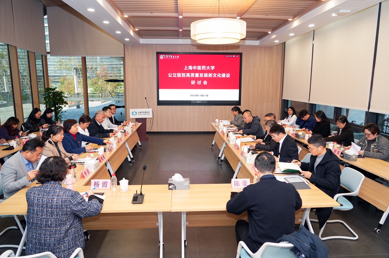 11月21日,bat365中文官方网站公立医院高质量发展新文化建设研讨会在附属市中医医院嘉定院区召开。为深入学习贯彻习近平文化思想,落实国家和本市中医药工作会议精神,会议回顾总结附属医院文化建设成果,部署未来高质量发展新文化工作。会议特邀上海市卫健委新闻宣传处处长艾晓金、bat365中文官方网站原副校长余小明和上海报业集团“海上名医”数字化医疗健康平台负责人崔颖参加,bat365官网党委副书记沈辉,校宣传部、各附属医院以及相关职能部门负责人出席本次会议。