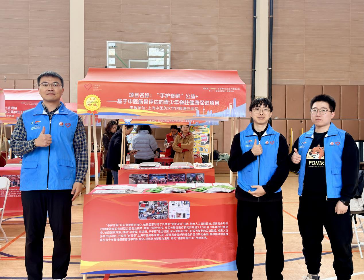 项目简介:“手护脊梁”以公益普惠为核心,依托bat365中文官方网站附属曙光医院推拿科“筋骨评估”技术,融合人工智能算法,探索青少年脊柱健康筛查的创新型公益创业模式。项目已联合学校、社区与基层医疗机构开展逾3.4万名青少年脊柱公益筛查,响应国家政策,推动“早发现,早诊断,早干预”走出校园,深入家庭与社区,形成可复制的公益路径。成果入选多项市级项目,并获得“创青春”上海市金奖等荣誉认可。项目具备良好的社会价值与转化基础,持续推动中医推拿在青少年脊柱健康管理中的公益化、规范化与智能化发展,助力“健康中国2030”建设。