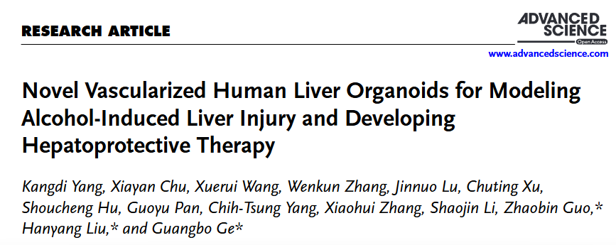 近日,bat365官网交叉科学研究院葛广波、郭兆彬团队在国际知名期刊Advanced Science上在线发表了题为“Novel Vascularized Human Liver Organoids for Modeling Alcohol-Induced Liver Injury and Developing Hepatoprotective Therapy”的研究性论文。该研究团队成功构建了一种新型人源血管化肝脏类器官(3HLOs),该类器官不仅能精准模拟酒精性肝病发生发展过程中的关键分子事件与病理进程,还在保肝药物的筛选与评价、以及终末期肝病的再生医学治疗方面表现出良好的应用潜力。
