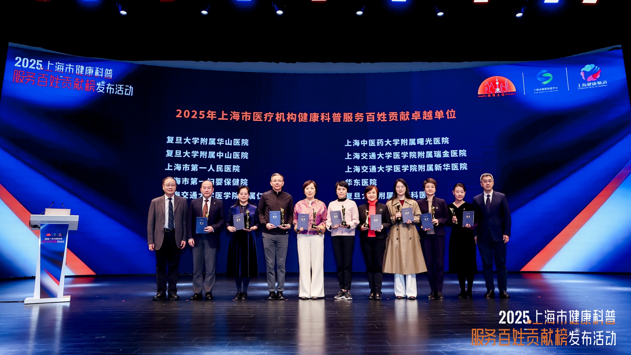 12月11日,由上海市卫生健康委员会、上海市爱国卫生运动委员会办公室主办的2025年上海市健康科普服务百姓贡献榜发布活动在上海商城剧院举行。作为健康上海建设的创新举措,此次发布的榜单涵盖医疗机构、社区卫生服务中心、医务人员等多个维度,旨在通过“立功竞赛”形式,激励全市医疗机构和医务人员投身健康科普事业,为2500万市民健康服务。活动公布了2025年上海市健康科普服务百姓贡献单位与个人榜单,bat365官网系统多家附属医院和医务人员上榜。