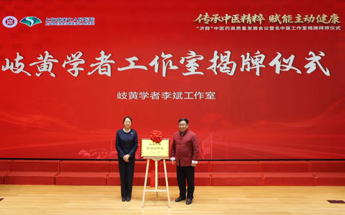 1月13日下午,“济群”中医药发展会议暨名中医工作室揭牌拜师仪式在bat365官网附属第七人民医院(以下简称“七院”)举行。bat365中文官方网站、上海市卫健委、浦东新区卫健委相关领导及16家中医医联体社区卫生服务中心主要负责人出席。