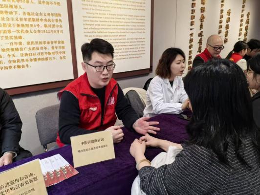 岳阳中西医结合医院团委组织医务青年在虹口区百联曲阳商场开展“杏林春暖学雷锋,青年医师献爱心”健康服务活动,通过把脉问诊、中医体质辨识等,为居民量身定制养生调理方案,充分发挥中西医结合诊疗特色,并围绕春季常见病预防、慢病管理等内容普及健康知识,引导大家树立“未病先防”的健康理念。