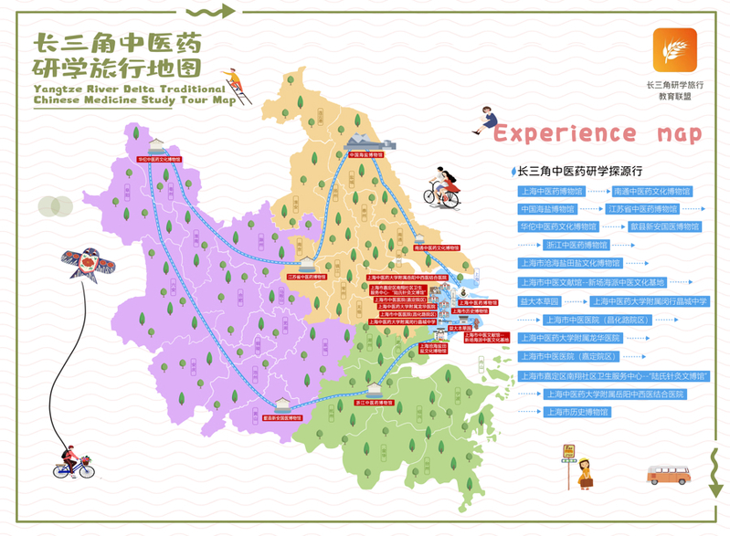 赓续杏林,创联未来。按照“长三角研学旅行教育联盟中医药研学线路”,全线囊括苏浙沪皖多地的17个场所,串联起长三角区域优质中医药文化资源,带领青少年走进博物馆、中学、中医院、药材种植基地等场景,游中学、学中游。