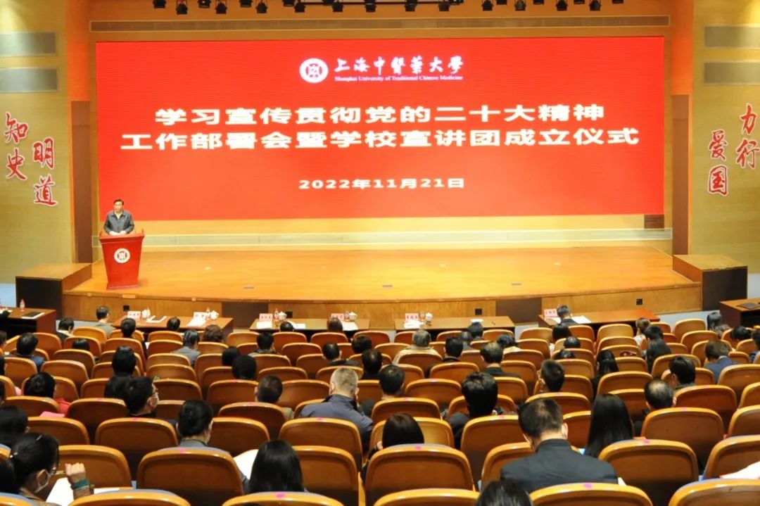 11月21日下午,bat365官网召开学习宣传贯彻党的二十大精神工作部署会暨学校宣讲团成立仪式。校党委书记曹锡康对学校系统学习宣传贯彻党的二十大精神的实施方案进行了全面部署。校党委中心组成员,教师党支部书记、青年教师班主任、马克思主义学院教师,“杏马”理论宣讲团、“星火”大学生红色精神宣讲团成员在图书馆裙楼四楼报告厅主会场参加会议。校党委副书记、纪委书记许铁峰主持会议。