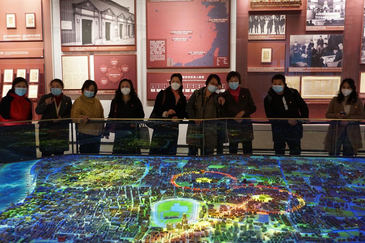 一行人参观了“伟大的开端——中国共产党创建历史陈列”序厅、“前仆后继、救亡图存”“民众觉醒、主义抉择”“早期组织、星火初燃”“开天辟地、日出东方”“砥砺前行、光辉历程”和尾厅共7个展厅。一件件传统的珍贵文档与模拟沙盘、全息投影等现代多媒体技术相结合,让观众感悟百年来中国共产党的奋斗历程,感悟中国共产党的诞生地——上海这座光荣之城的荣光。