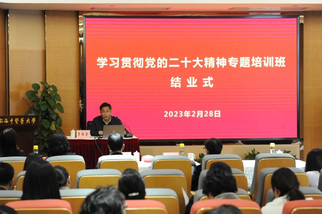 此次培训班自去年12月8日开班以来,历时两个多月,先后邀请中共上海市委党校、上海市社会科学界联合会、上海市教育科学研究院、市教卫“党的二十大精神专家宣讲团”等专家,从“深刻领悟‘两个确立’,坚决做到‘两个维护’”“新时代、新形势、新格局”“国家治理现代化的科学逻辑与历史逻辑”“党的自我革命永远在路上”“科教兴国战略下上海高等教育的高质量发展”“中国式现代化与中国共产党领导力:传承发展中华文化基因之维”等角度深刻阐释党的二十大精神,培训班采取集中授课、线上同步、党章及党的二十大报告辅导读本自学等形式相结合,学校部分科研骨干、党外知识分子、思政理论课教师等同步参加学习。[组织部(统战部、党校)]