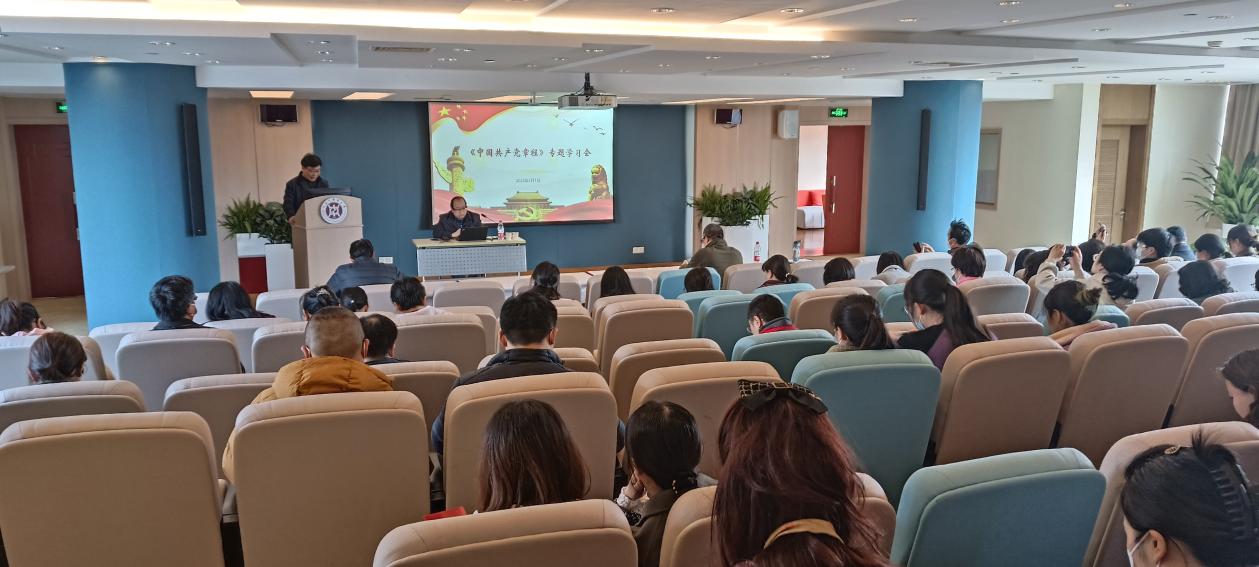 为深入学习贯彻党的二十大精神,引导广大党员切实把思想和行动统一到党的二十大精神上来,图书馆党总支邀请bat365官网“杏马”理论宣讲团成员、马克思主义学院教授周福振,于3月1日在国际交流合作中心三楼报告厅作“健全全面从严治党体系——学习二十大党章”专题辅导报告。来自图书馆党总支、科技人文研究院党总支、体育部党支部、中医药博物馆党支部、中医老年医学研究所党支部的近百名党员参加了本次学习会。会议由图书馆党总支书记石德响主持。