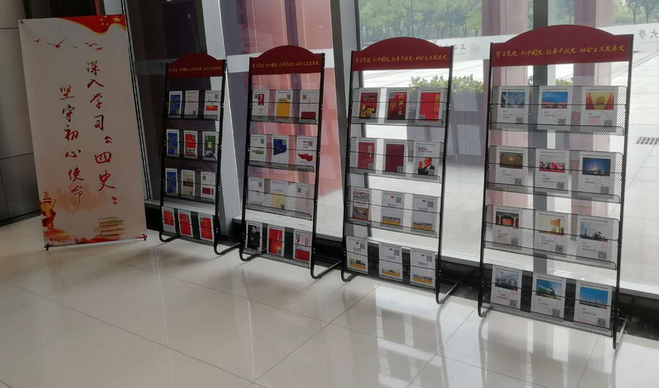 在图书馆二楼借书部设“四史”主题书架,同时设置25人左右的阅读区,并提供交流讨论区,供各基层党组织使用(预约电话:牛光辉51322614,王卓51322625)。