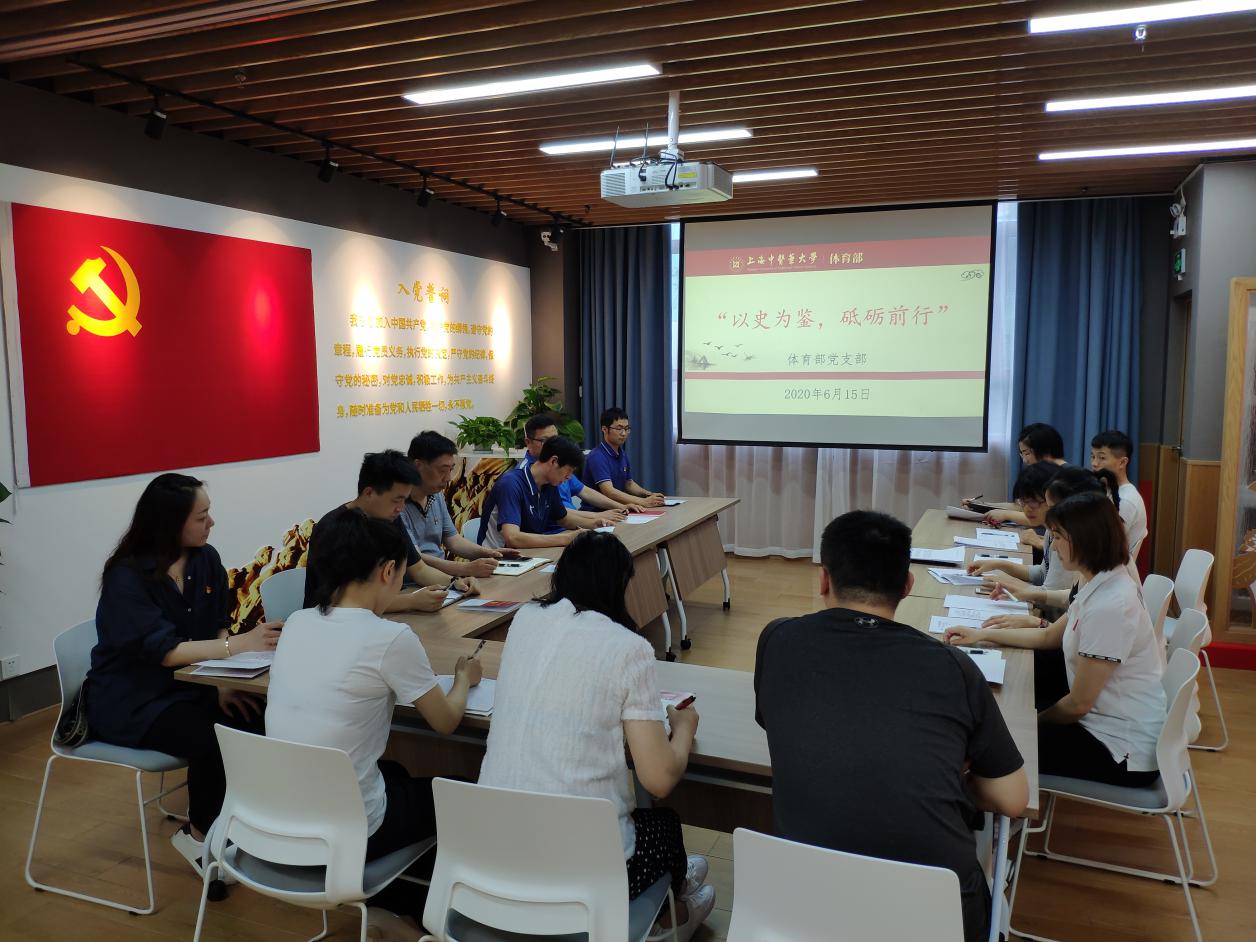 为深入推进落实bat365中文官方网站党委关于“四史”学习教育的部署要求,6月15日下午,校体育部党支部组织全体党员在学校党建服务中心开展“四史”学习教育专题党课。本次党课由体育部党支部书记龚博敏主持。