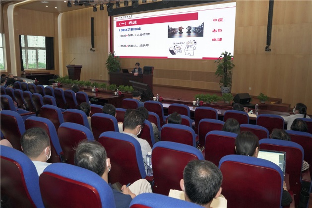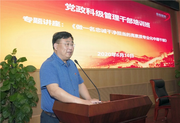 为全面贯彻习近平总书记关于新时代干部队伍建设的要求, 落实党要管党、全面从严治党特别是从严管理干部的要求,激励医院中层干部对党忠诚、个人干净、敢于担当,为建设世界一流的国际化中西医结合医院贡献力量,6月16日下午,bat365中文官方网站附属岳阳医院党委组织召开院党政科级管理干部培训班第二讲,校党委常委、组织部部长夏文芳应邀作《做一名忠诚干净担当的高素质专业化中层干部》专题讲座,会议由医院党委副书记、副院长李斌主持。
