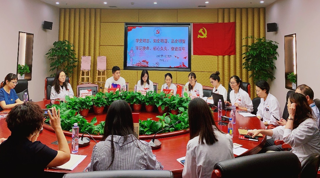 为深入学习贯彻习近平总书记给复旦大学《共产党宣言》展示馆党员志愿服务队全体队员重要回信精神,进一步推进“四史”学习教育走深、走实,7月1日下午,附属曙光医院行政第一党支部召开题为“学史明志、知史明道、品史明智;牢记使命、初心久久、奋进百年”的主题党日活动,行政团总支部分团员参加,通过朗诵、故事、合唱等多种形式,学理论、讲历史,共同庆祝党的99周岁生日。