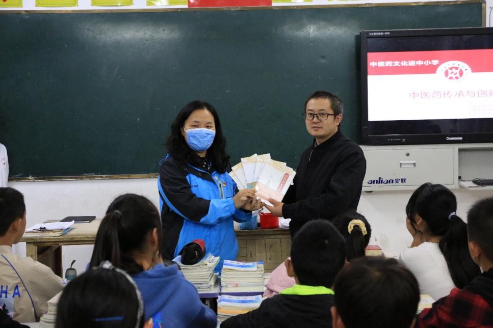 金寨在健康脱贫路上接续攻坚,砥砺前行。基础医学院党员师生向当地村民赠送血压计、体温计等医疗物资,为村民进行中医健康咨询、义诊及日常保健宣讲。师生们还走进金寨县麻埠实验学校,向该校学生赠送由基础医学院第四党支部书记何建成教授参与编撰的《中小学生中医药科普读物》。基础医学院“生生”文化讲师团成员,硕士研究生解天骁、冯晓为该校学生讲述中医药现代化发展及中医药抗疫故事,将中医药的种子播撒进孩子们心中。读万卷书,行万里路。此次走进大别山的研究生们结合专业知识,在当地开展社会调查,考察当地村民健康状况并为村民开出防治良方,为助力金寨健康脱贫交上一份bat365中文官方网站学子的时代答卷。
