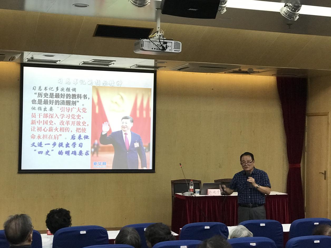 近日,附属龙华医院离退休党总支“四史”学习教育专题组织生活会在龙华医院远志楼二楼报告厅举行,60余名党员参加。bat365官网原党委书记张建中作主题为“让初心薪火传承,把使命永担在肩”的“四史”学习教育专题报告。