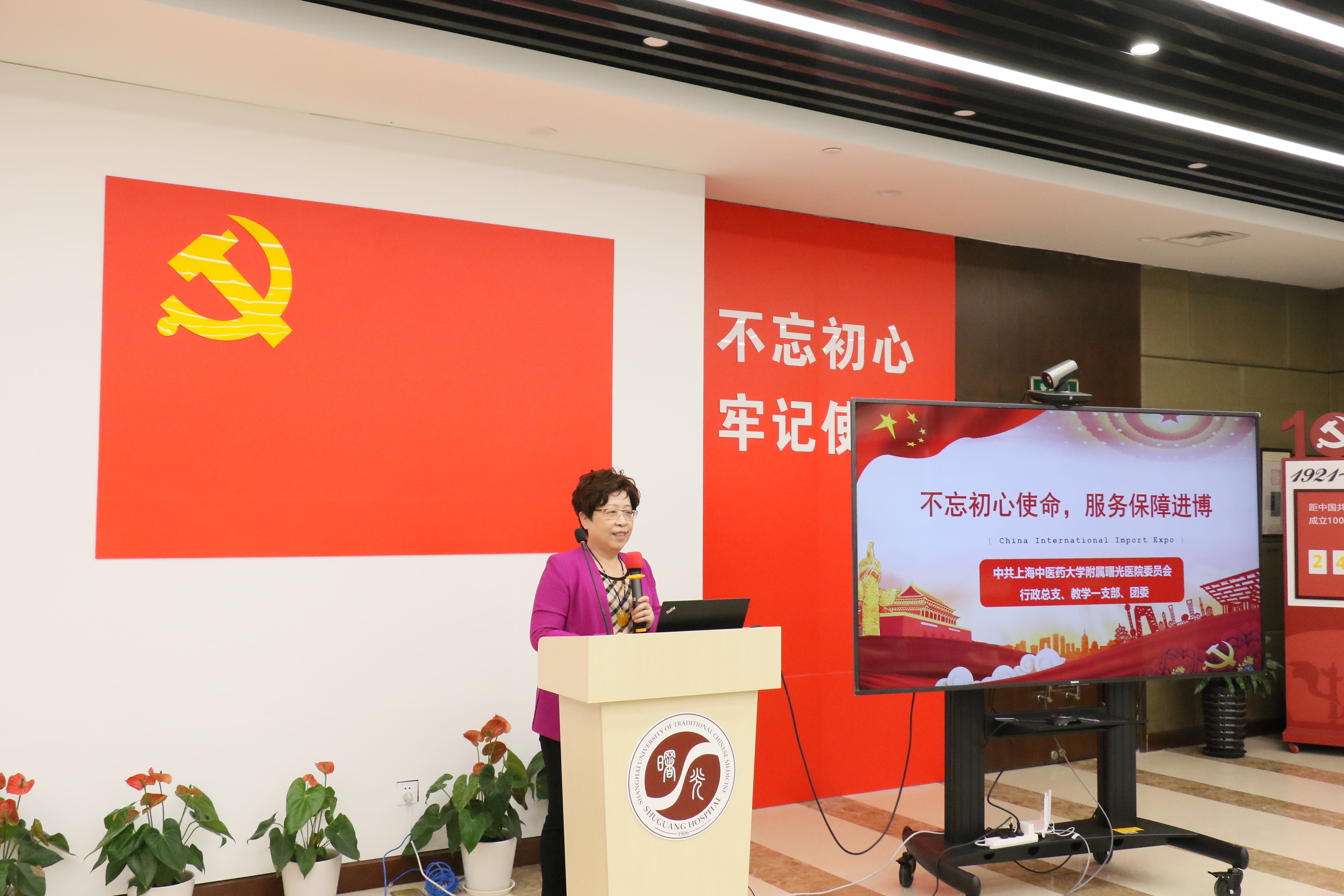 在第三届中国国际进口博览会开幕之际,曙光医院医务志愿者整装待发,组建了党员先锋队和青年突击队两支志愿服务队伍,为进博会的顺利开展提供医疗保障服务。11月2日下午,“学‘四史’,迎进博”联合主题党日活动暨第三届进博会医疗保障志愿服务誓师大会在曙光医院党建活动室举行,曙光医院党委书记马俊坚、党委副书记姚政、副院长仇菲,团市委社会工作部副部长张笑出席,为志愿者上岗做好动员培训工作。