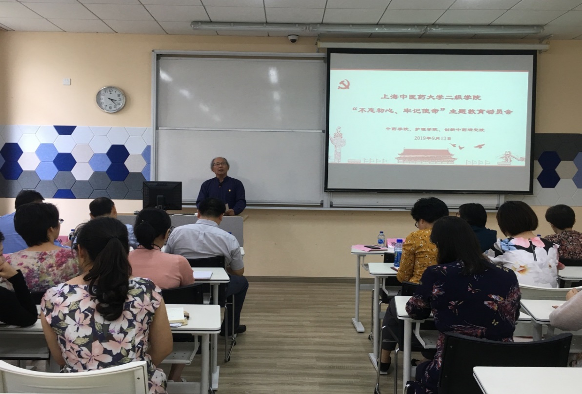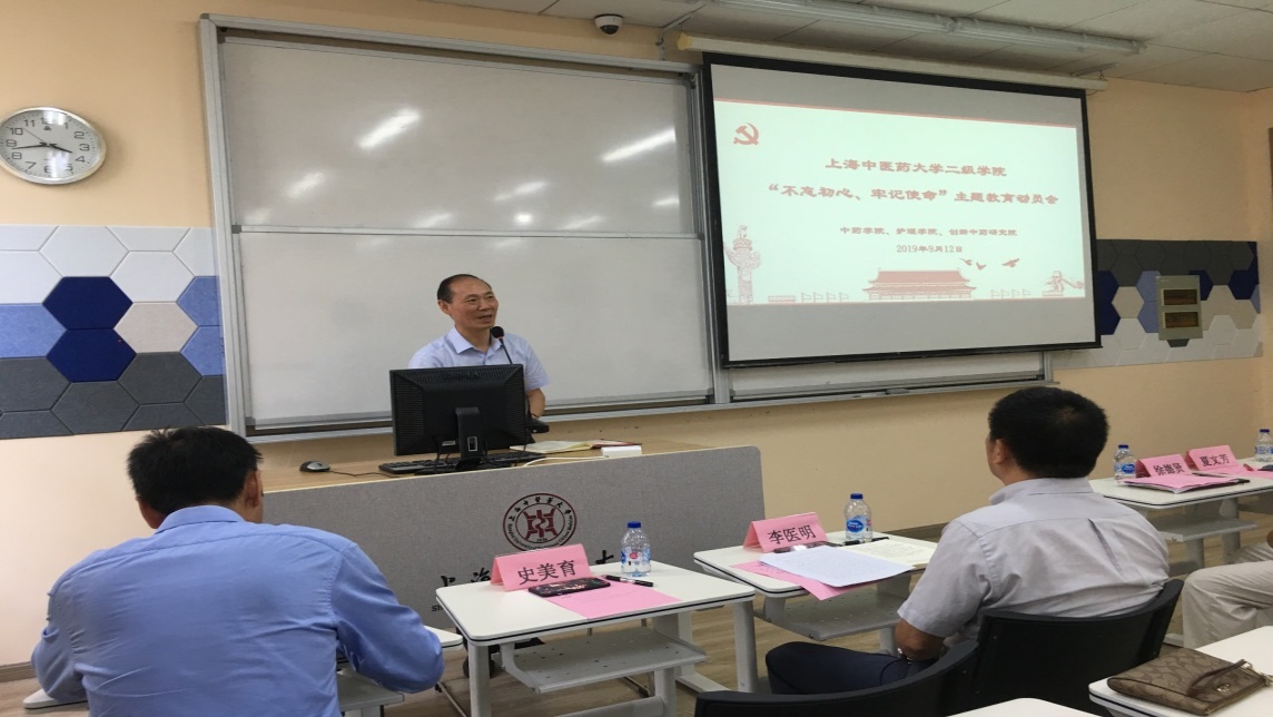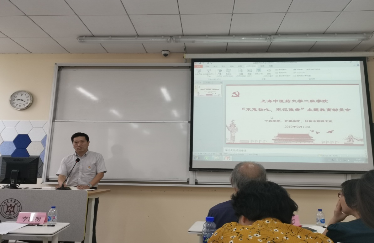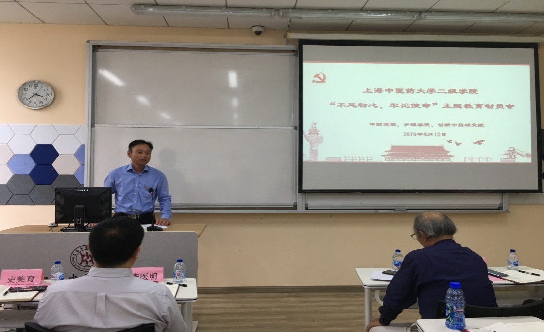 9月12日下午,中药学院联合护理学院、创新中药研究院在10208教室召开“不忘初心、牢记使命”二级学院主题教育动员会。校第四指导组出席会议。各院党政领导班子成员、党支部书记、教研室主任等30余人参加会议,会议由护理学院党总支副书记、院长张翠娣主持。