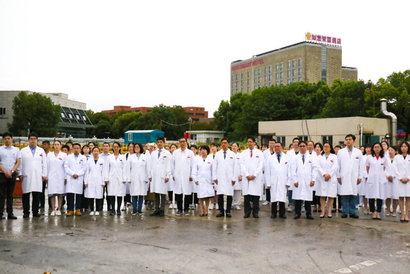 与此同时,党委副书记姚政同志带队我院32位医护人员,作为上海全体医务人员代表参加上海市庆祝中华人民共和国成立70周年升旗仪式。