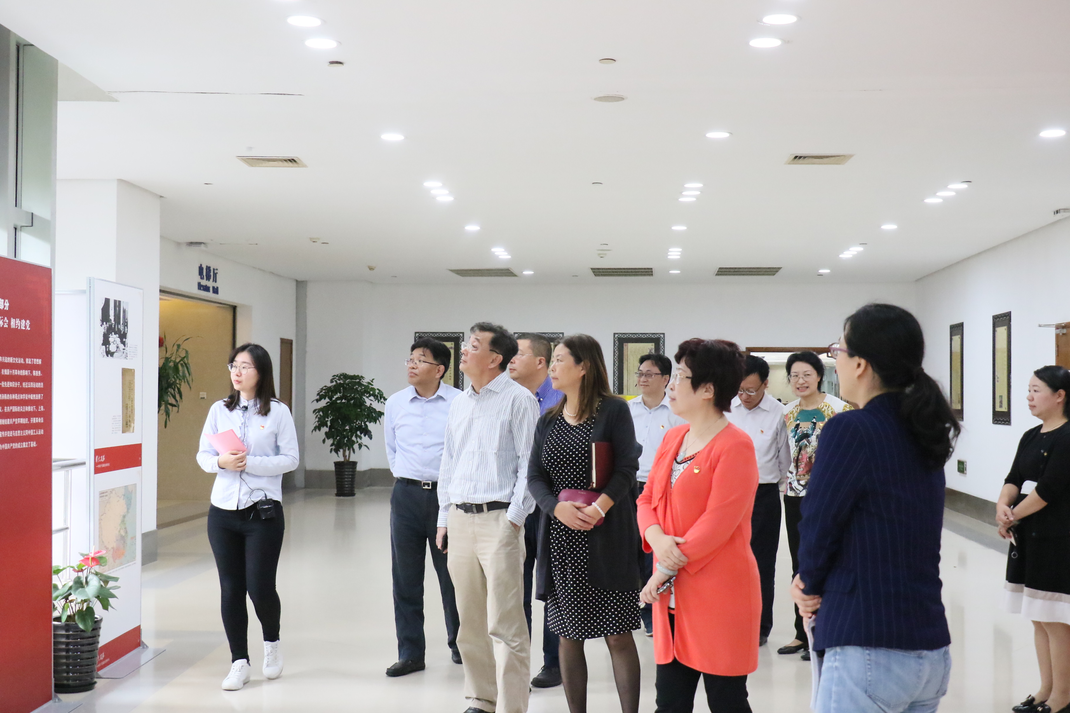 最后,指导组一行人察看新建的标准化党建活动室。新的党建活动室真正实现阵地正规化、活动经常化、制度规范化,做到党旗上墙、入党誓词上墙、习近平新时代中国特色社会主义思想上墙及习近平总书记关于发展中医药的重要论述上墙等,使环境充满仪式感和庄严感。活动室实施资料标准化管理,配备书橱和报刊架,购买了党建方面的书籍,为党员干部提高思想政治素质和理论水平搭建了平台。活动室的一整面墙上陈列着由职工自发策划和创作的《上医治国——习近平总书记用过的中医术语印选》展,印章作为中国传统文化的“四绝”之一,与中医药文化有机结合、相得益彰。该展既传播了中国传统文化,又丰富了主题教育学习形式。