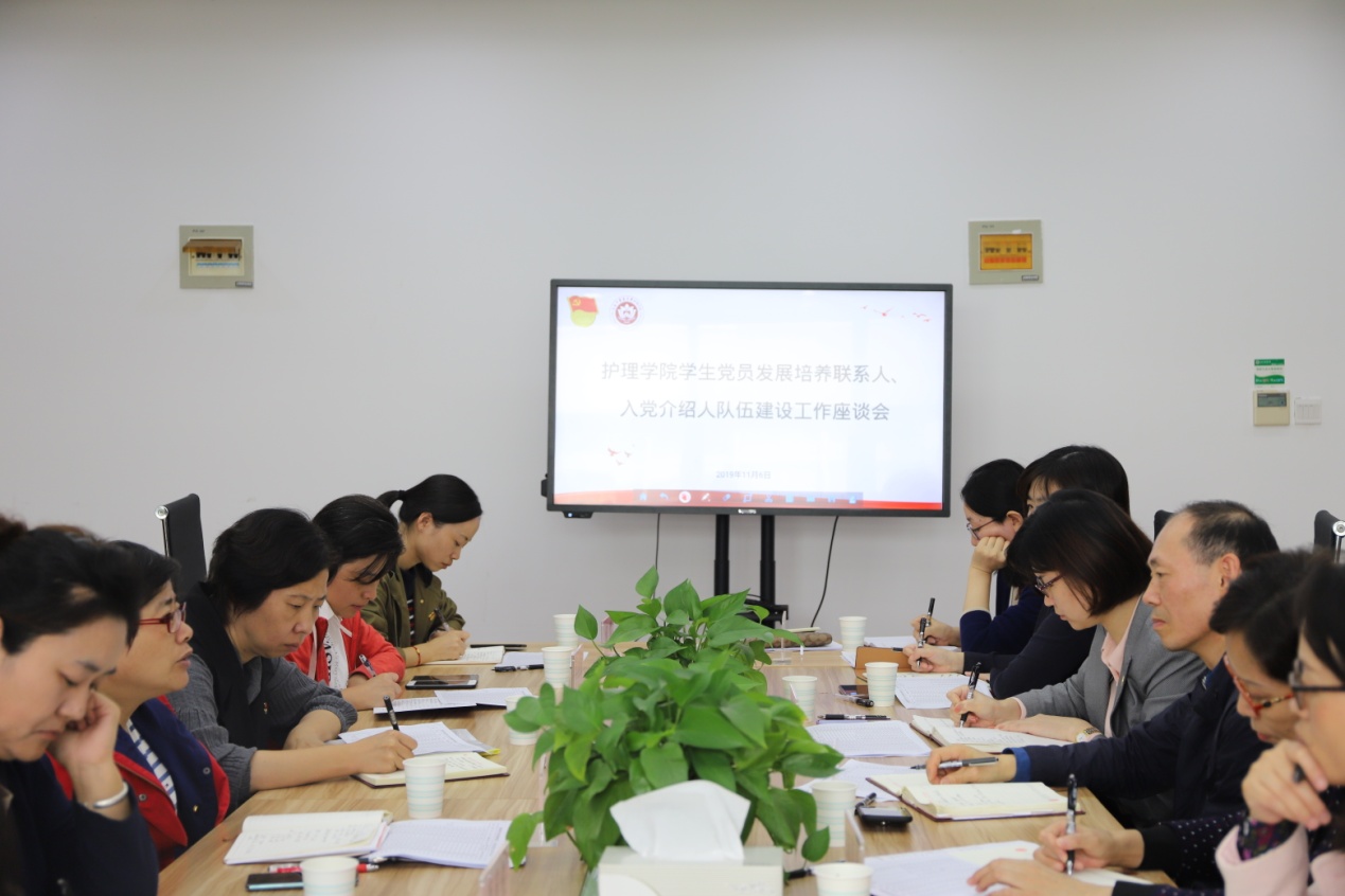 11月6日,护理学院学生党员发展培养联系人、入党介绍人队伍建设工作座谈会在9118会议室召开,校组织统战党支部党员,护理学院党总支全体委员、各党支部书记、青年教师班主任、辅导员及学生代表出席会议。