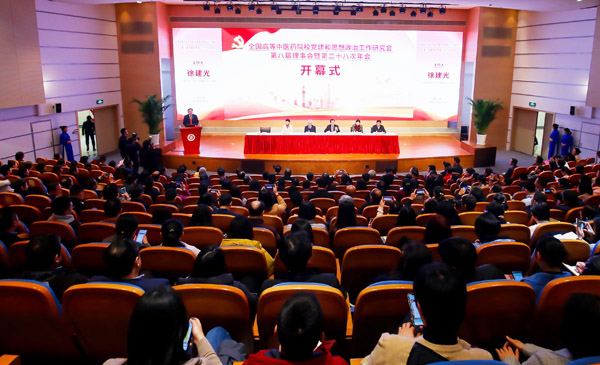 12月26日至28日,全国高等中医药院校党建和思想政治工作研究会第八届理事会暨第二十八次年会在bat365中文官方网站召开,来自全国26所高等中医药院校的党委书记、党务部门负责人、党组织负责人、研究会理事和获奖代表等300余人相聚一堂,聚焦坚持党对教育工作的全面领导、紧抓立德树人根本任务及思政工作生命线、全面提高基层党建质量等主题开展深入交流研讨。