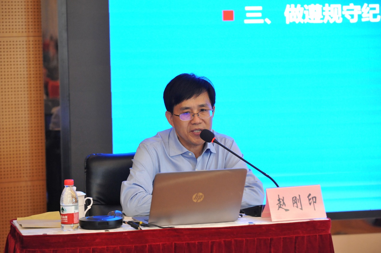 中共上海市委党校(上海行政学院)党的建设教研部主任赵刚印作“学纪 知纪 明纪 守纪——新版《中国共产党纪律处分条例》导学”辅导报告,深刻阐释了开展党纪学习教育的重要性与目标要求,系统讲解了政治纪律、组织纪律、廉洁纪律、群众纪律、工作纪律、生活纪律的主旨要义和规定要求,并提出要牢记党员身份,划清公私界限,克服侥幸心理,履行好维护纪律的责任,做遵规守纪的合格共产党员。